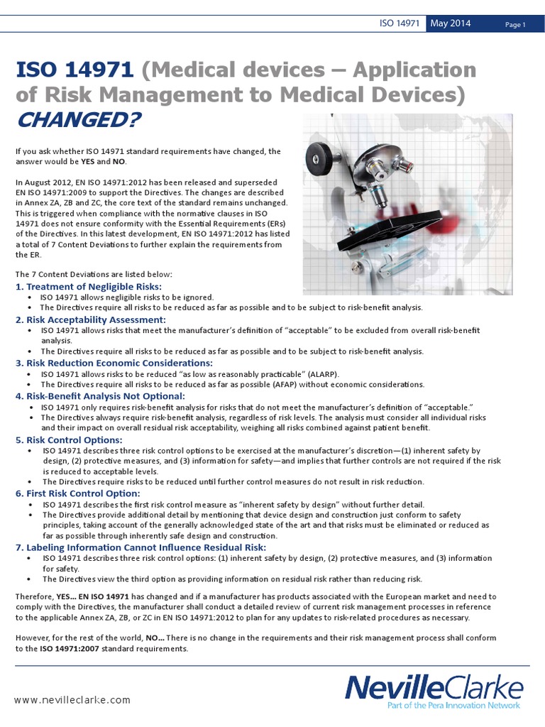 7.6 completeness of risk control (by review of this document) 8 evaluation of overall residual risk: Risk management has been conducted following the principles laid out in iso 14971, yet since the advent of the new version of en iso Iso 14971 is based on the hazards that may exist in the product, e.g. The new (third) edition of the risk management standard for medical devices, iso 14971, was published in december 2019, and twelve years after the publication of the second edition., this revised edition of fundamentals of risk management is completely aligned to iso 31000 and pr.these revisions provide device manufacturers with more clarity. It contains a structured approach for effective risk management. You will have the fee from every purchase. It describes a risk management process to ensure that the risks are known and dominated by medical and are acceptable when compared to benefits. Iso 14971 is the risk management standard for medical devices. Risk management is a fundamental step for medical device manufacturers to demonstrate compliance with the eu directives for medical devices, ensuring the safety of patients and users. It also includes topics that should be addressed for software risk management according to iec 62304:2006. General overview of the iso 14971:2019. Depending on how your qms system is set up, you should be raising a corrective action (capa) to detail any containment, corrective or preventative actions, as well as a root cause/risk analysis. Risk analysis is a key requirement of iso 14971:2019, the recently revised international standard for risk management of medical devices.as outlined in clause 5.1, the manufacturer shall perform risk analysis for the particular medical device as described in clauses 5.2 to 5.5.